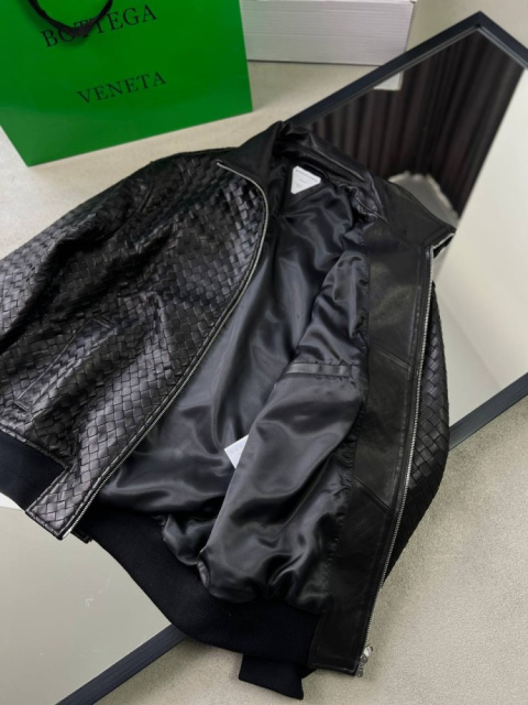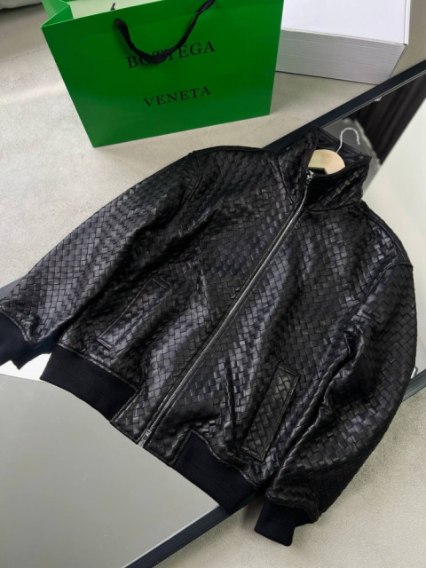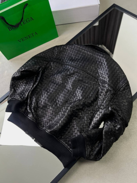 Демісезонна курточка Bottega Veneta з натуральної шкіри чорного кольору