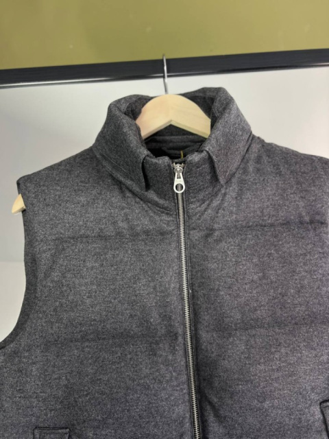 Жилет темно-сірого кольору Loro Piana Виробник: Китай Матеріал: вовна/кашемір Підкладка : нейлон Колір: темно-сірий Розміри: 2XL (Висота 76; Груди 65; )
