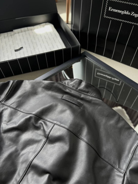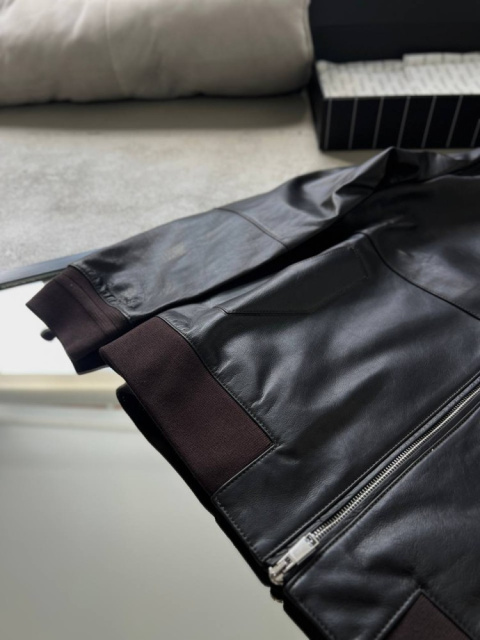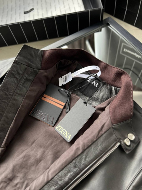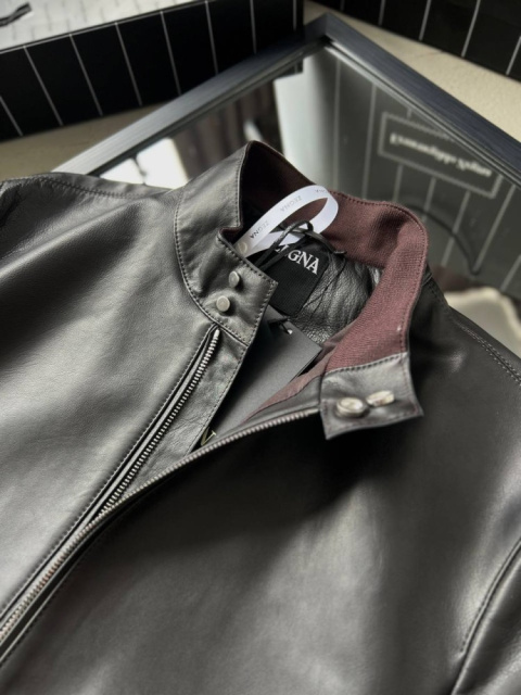 Демісезонна куртка Zegna чорного кольору з натуральної шкіри
