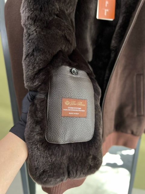 Кашемірова куртка Loro Piana коричневого кольору з хутром бобра v113