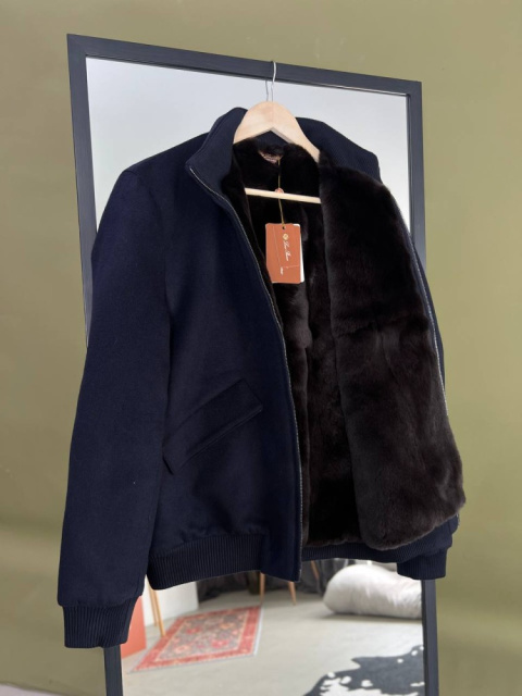 Кашемірова куртка Loro Piana темно-синього кольору з хутром бобра