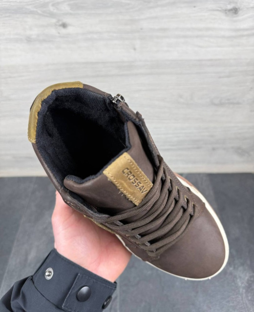 Черевики зимові з натуральної шкіри та набивного хутра коричневі