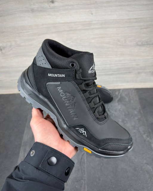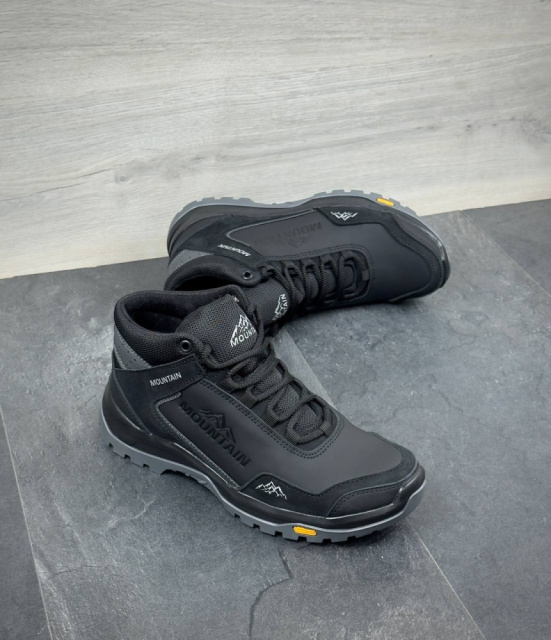 Черевики зимові Mountain з натуральної шкіри та набивної шерсті чорні
