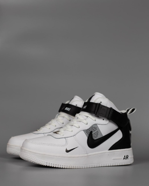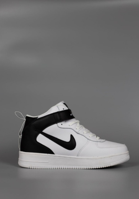 Чоловічі кросівки зимові Nike Air Force 1 mid white black (хутро)