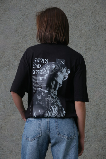 Стиль оверсайз являє собою одяг, який виглядає як би на пару розмірів більше, для нього характерна зручність і простота деталей.Якісний принт на спині у поєднанні із мінімалістичном лого компанії на грудях, що символізує дату заснування бренду. виконаний за допомогою техгології """"UV DTF"""" , що є найбільш стійким до зовнішніх чинників , та екологічним.