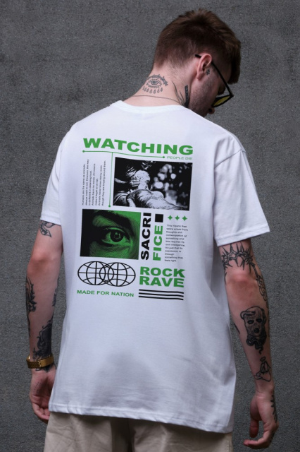 Склад: 100% бавовна Підкатегорія: Oversize, З принтом, Футболка Матеріал: Бавовна Cтиль оверсайз являє собою одяг, який виглядає як би на пару розмірів більше, для нього характерна зручність і простота деталей. Якісний принт на спині у поєднанні із мінімалістичном лого компанії на грудях, виконаний за допомогою технології "DTF" , що є найбільш стійким до зовнішніх чинників, та екологічним. Подовжена форма рукавів і талії, відповідає всім вимогам сучасного OVERSIZE стилю. Нестандартне пошиття, спущений рукав - забезпечать максимальний комфорт при щоденній експлуатації. Щільність тканини: 180 г/м. Догляд: прання у звичайному режимі при температурі не вище 30°C, без віджиму; відбілювання заборонено; сушити в підвішеному стані, без застосування штучної сушки. Колір виробу може відрізнятися на декілька тонів. S/M Напівобхват плечі - 52 Напівобхват грудей - 57Довжина по спині - 72 Довжина рукава - 21 L/XL Напівобхват плечі - 56 Напівобхват грудей - 61Довжина по спині - 75 Довжина рукава - 22 2XL/3XL Напівобхват плечі - 58 Напівобхват грудей - 64Довжина по спині - 81 Довжина рукава - 22