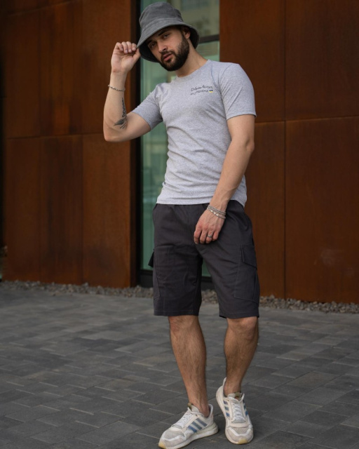 Футболка чоловіча з маленьким принтом «Доброго Вечора ми з України» Intruder сіра (9585494951)