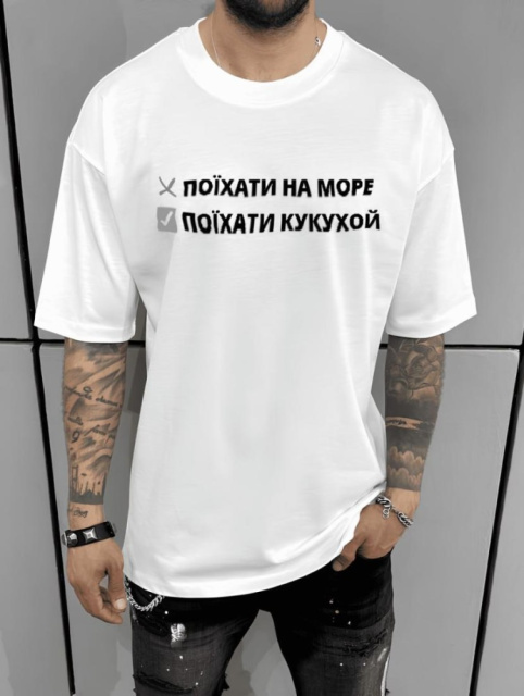 Біла чоловіча стильна оверсайз футболка з модним принтом вражаючий союз ультрасучасних модних тенденцій і максимально можливого рівня зручності в дні, що палять