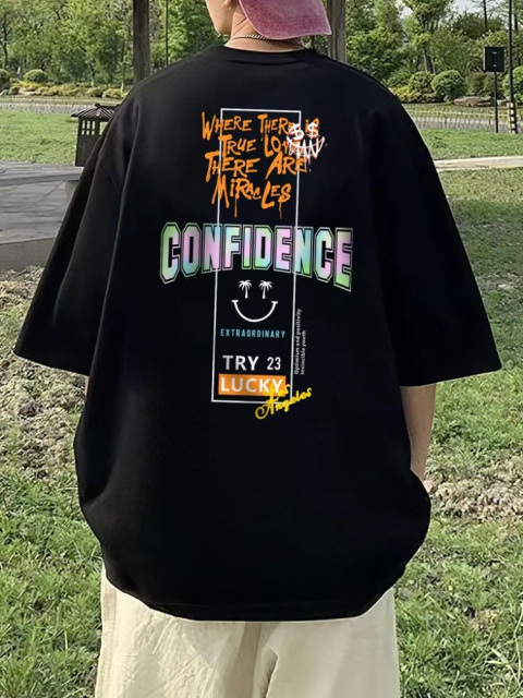 Чорна модна чоловіча оверсайз футболка з яскравим принтом вражаючий союз ультрасучасних модних тенденцій і максимально можливого рівня зручності в дні, що палять