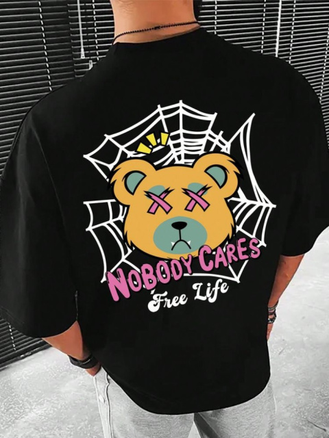 Чоловіча чорна комфортна оверсайз футболка з яскравим принтом вражаючий союз ультрасучасних модних тенденцій і максимально можливого рівня зручності в дні, що палять