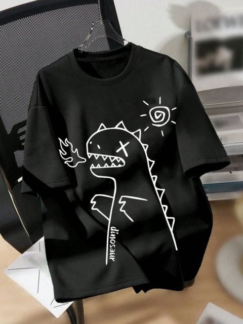 Чорна комфортна чоловіча оверсайз футболка з принтом вражаючий союз ультрасучасних модних тенденцій і максимально можливого рівня зручності в дні, що палять