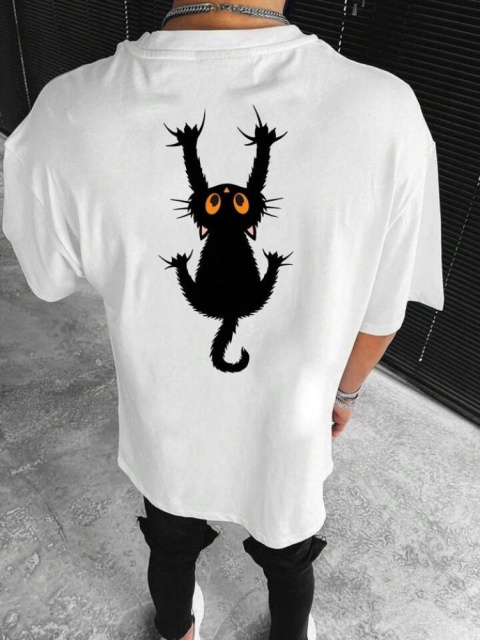 Комфортна чоловіча біла оверсайз футболка з яскравим принтом вражаючий союз ультрасучасних модних тенденцій і максимально можливого рівня зручності в дні, що палять