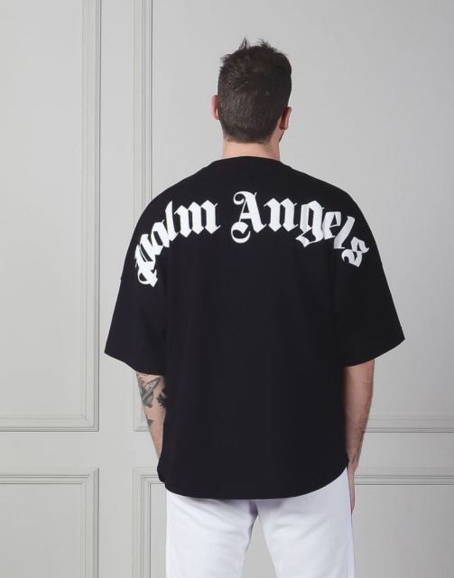 Чорна легка чоловіча оверсайз футболка з модним написом вражаючий союз ультрасучасних модних тенденцій і максимально можливого рівня зручності в дні, що палять