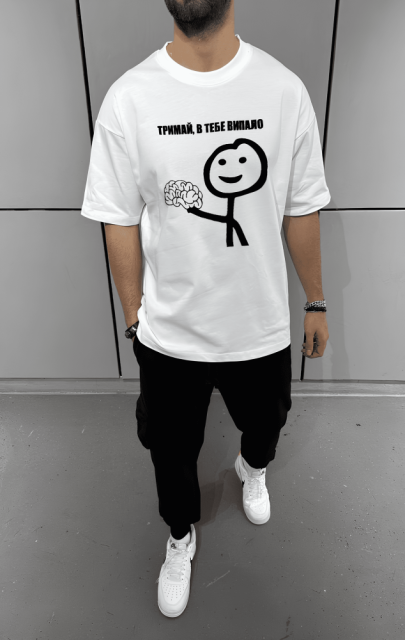 Модна біла чоловіча оверсайз футболка з яскравим дизайном вражаючий союз ультрасучасних модних тенденцій і максимально можливого рівня зручності в дні, що палять