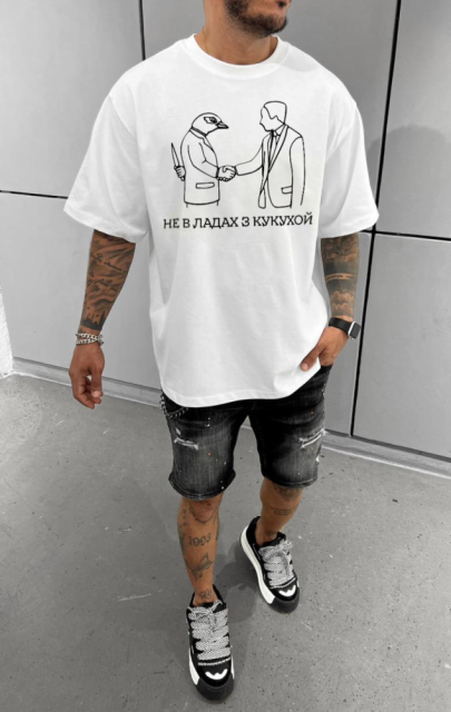 Чоловіча легка біла оверсайз футболка з крутим дизайном вражаючий союз ультрасучасних модних тенденцій і максимально можливого рівня зручності в дні, що палять