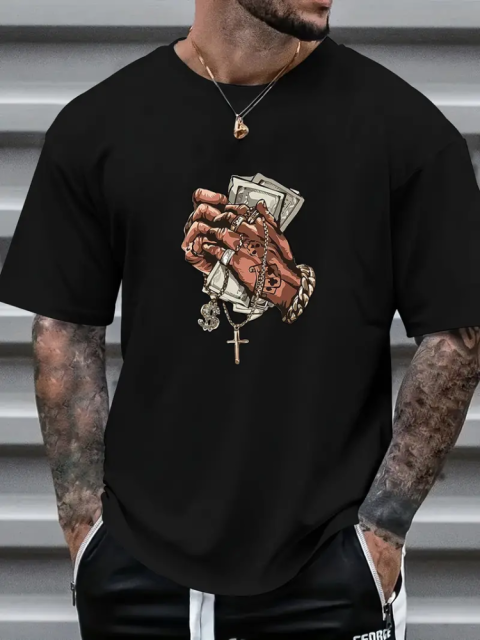 Чорна стильна чоловіча оверсайз футболка з модним принтом вражаючий союз ультрасучасних модних тенденцій і максимально можливого рівня зручності в дні, що палять
