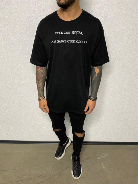 Чорна літня легка чоловіча оверсайз футболка з принтом вражаючий союз ультрасучасних модних тенденцій і максимально можливого рівня зручності в дні,