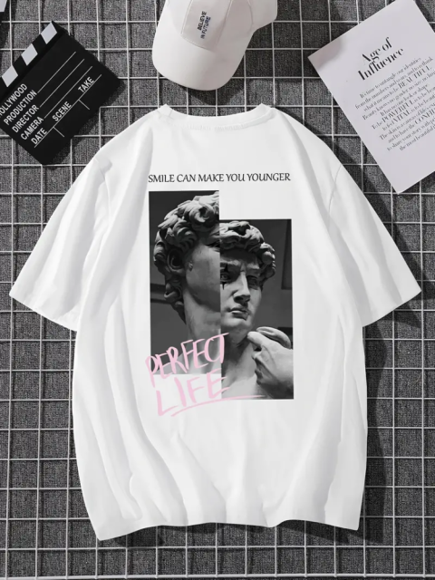 Футболка біла з ДТФ (оверсайз) | 57-246