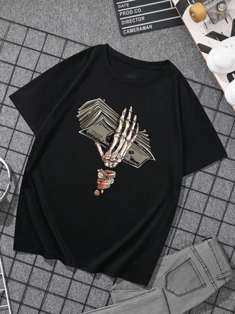 Футболка чорна з ДТФ (оверсайз) | 57-259