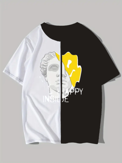 Чорно - біла чоловіча футболка з ДТФ принтом (оверсайз) вражаючий союз ультрасучасних модних тенденцій і максимально можливого рівня зручності в дні, що палять