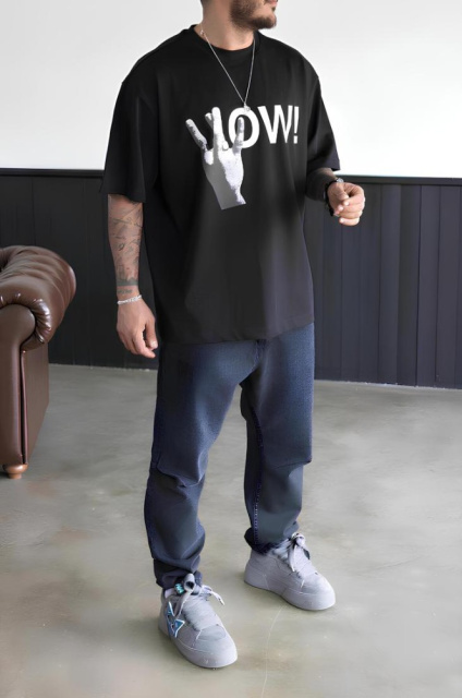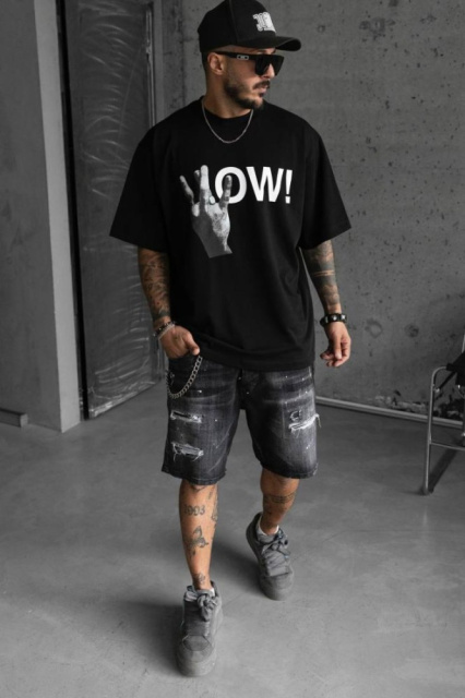 Футболка чорна з ДТФ принтом (оверсайз) | 57-354