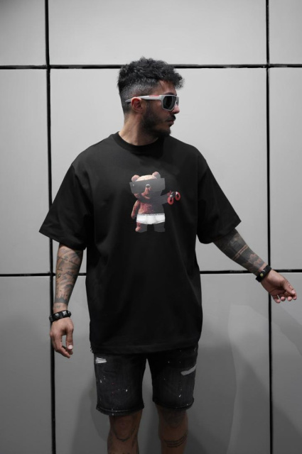 Футболка чорна з ДТФ принтом (оверсайз) | 57-392