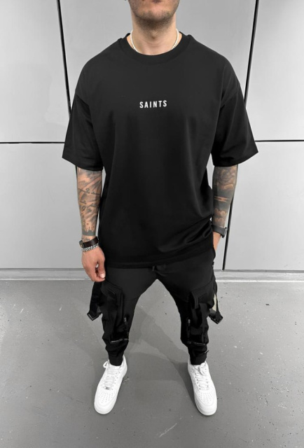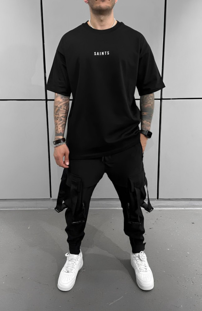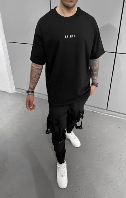 Футболка чорна з ДТФ принтом (оверсайз) | 57-401