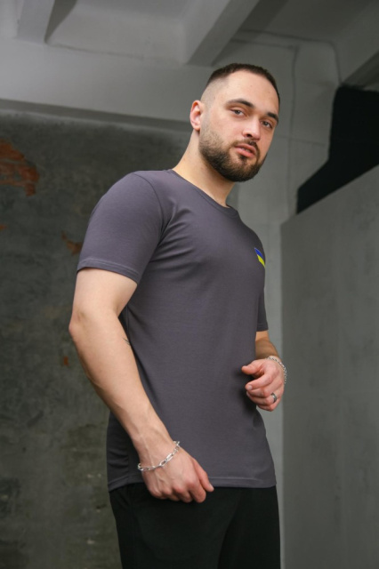 Футболка чоловіча з прапором на грудях Intruder темно-сіра (9241347523)
