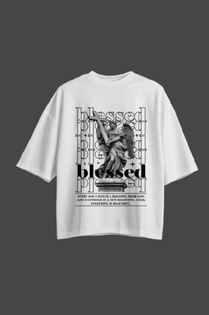 Oversize футболка з принтом Blessed біла