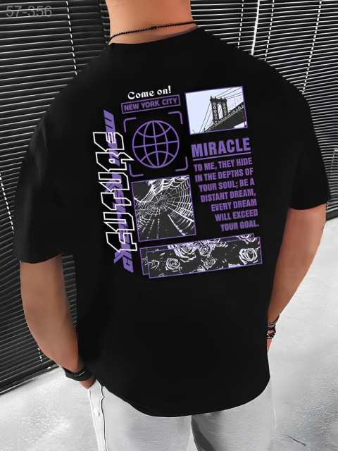 Футболка з ДТФ принтом (оверсайз) - Чорний - 57-356
