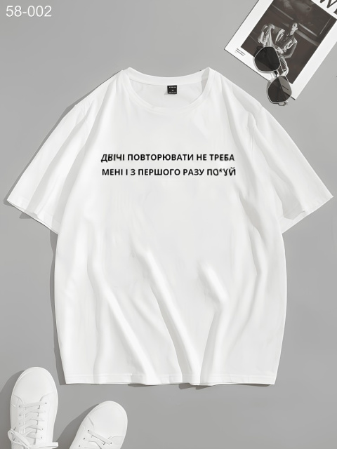 Трендова біла чоловіча оверсайз футболка з модним написом вражаючий союз ультрасучасних модних тенденцій і максимально можливого рівня зручності в дні, що палять