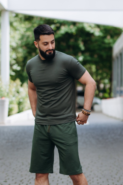Футболка чоловіча , колір хакі . Власне українське виробництво , тканина стрейч -кулір . Склад тканини 95% котон 5% эластан .